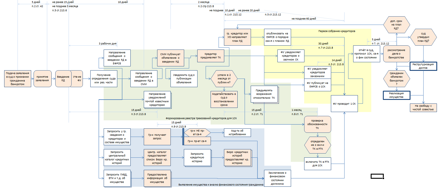 В плане выпуска версии ПАУ с банкротством физ лиц отрабатываем понимание на блок схемы
