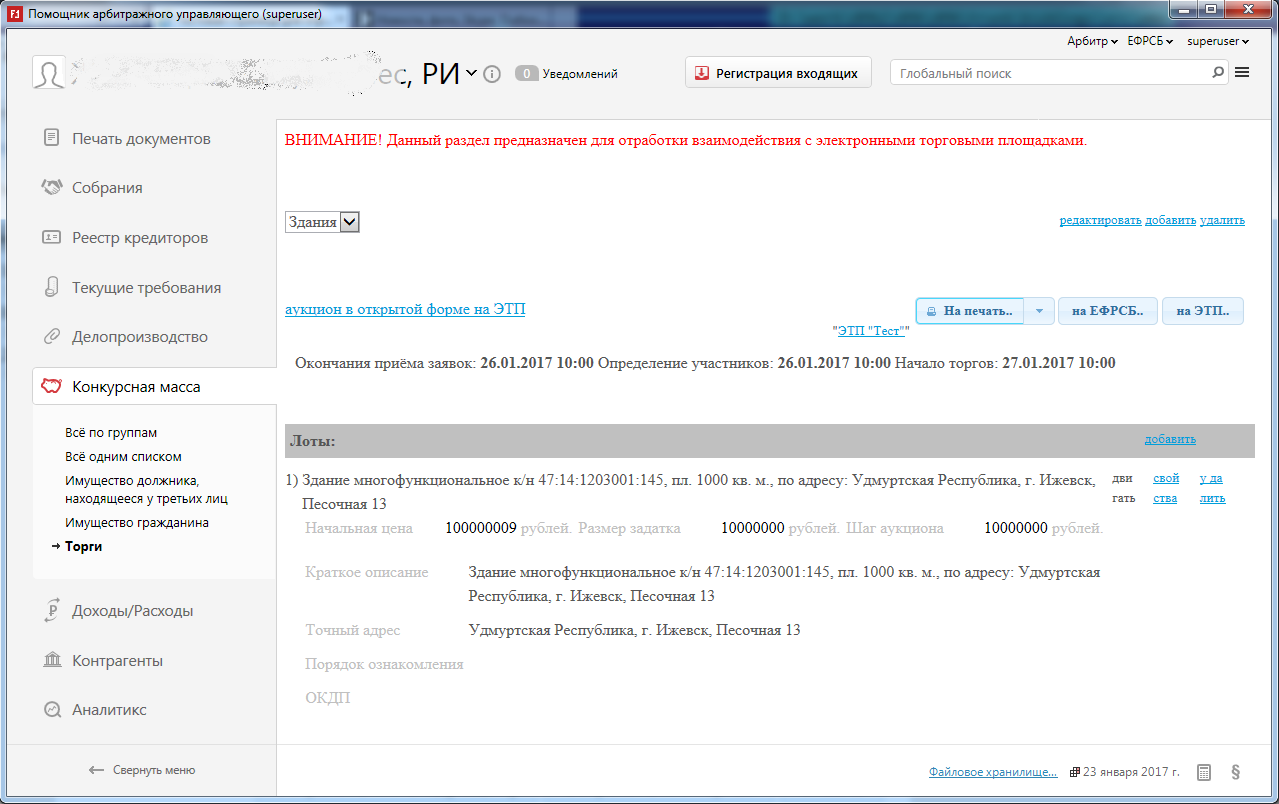 основная цель - избавить АУ от необходимости несколько раз вводить с клавиатуры одни и те же данные о торгах: