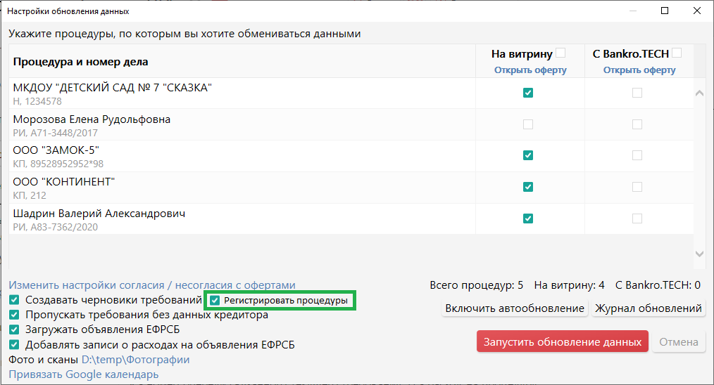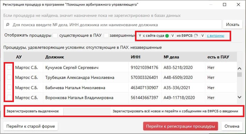 Но вот что касается процедур, которые он регистрирует в ПАУ уже прямо сразу после определения суда..