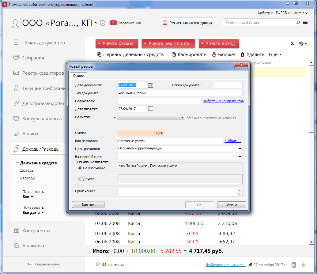 Сейчас как нам видится в частности нужно существенно ускорить регистрацию самых массовых расходов - на почту и на публикации в ЕФРСБ
