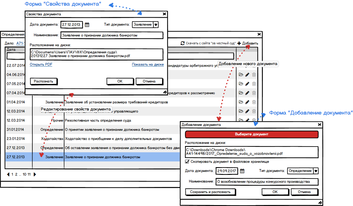 В общем ситуация созрела для того, чтобы все определения суда как то "складировать" отдельно при программе, чтобы иметь к ним быстрый и осмысленный доступ, быстро находить нужное и т.п. Можно конечно каждый раз лазить на arbitr.ru, но это долго и не всегда удобно.