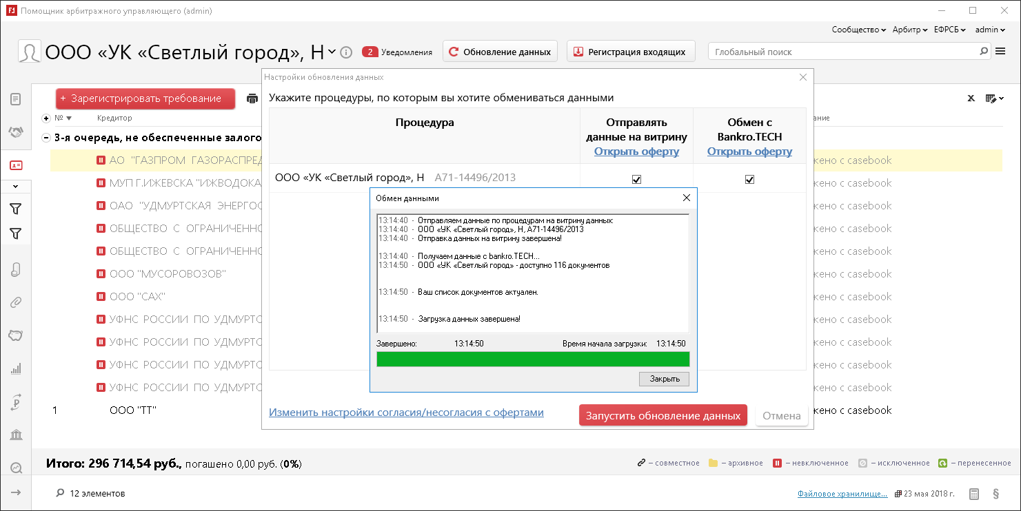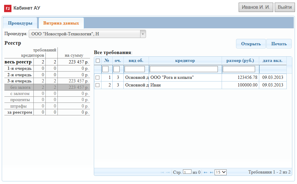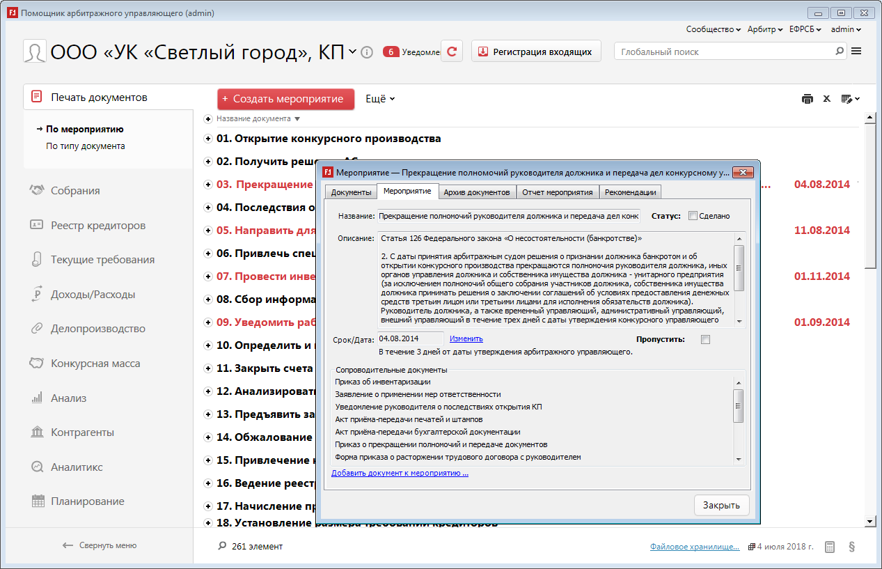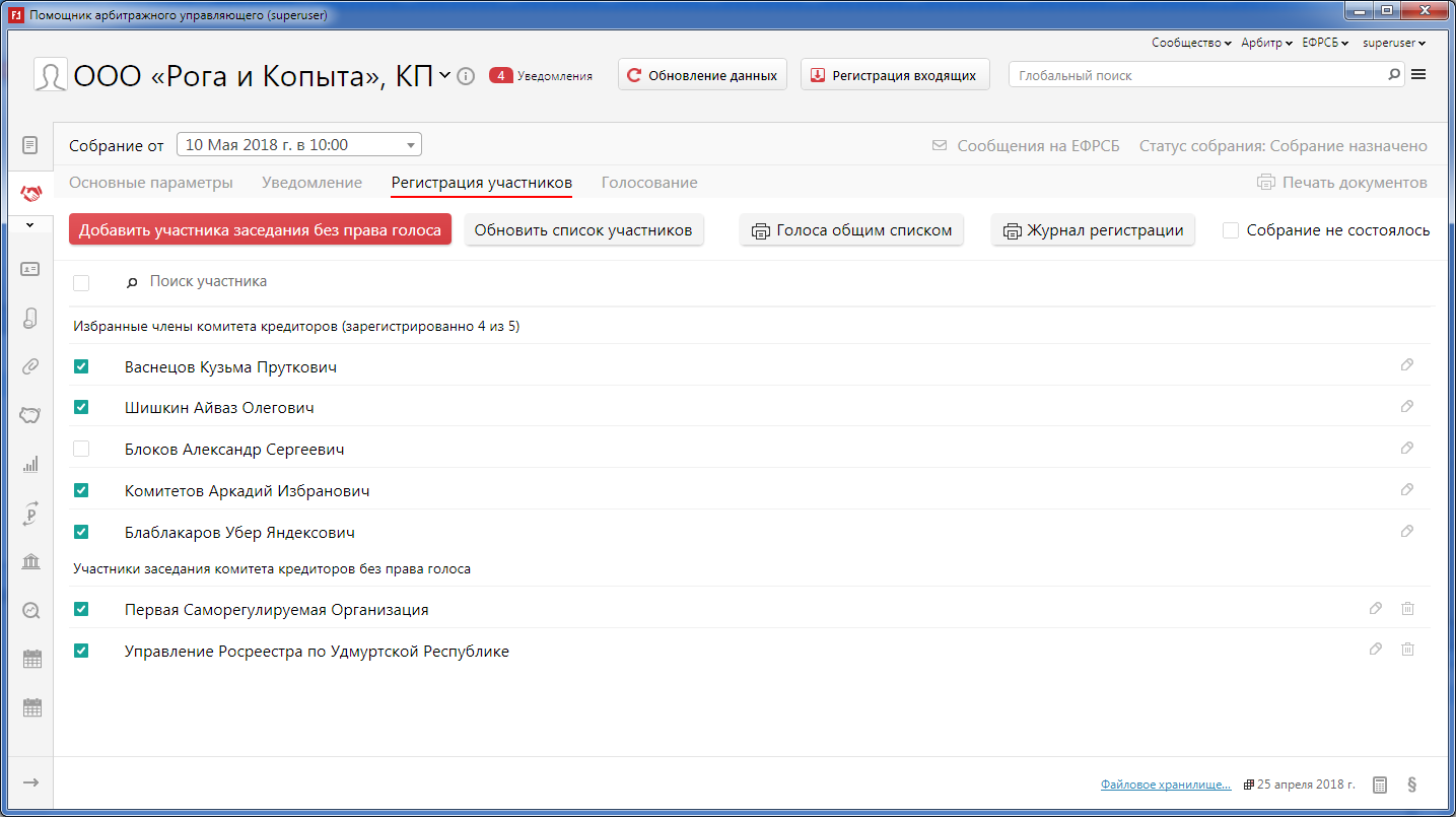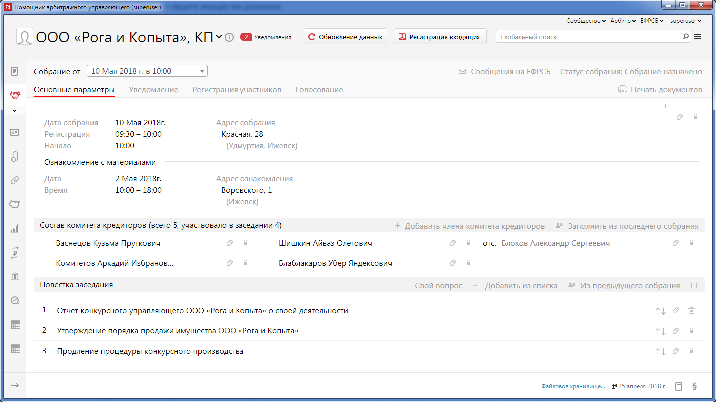 Полным ходом идет разработка подраздела "Комитет кредиторов". Основные параметры, уведомления, регистрация и голосование участников заседания уже можно посмотреть практически "вживую".