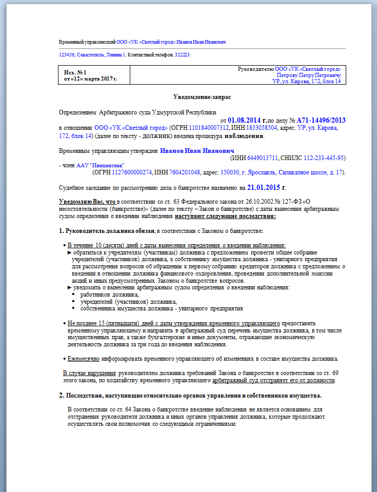 1) Разместить на ЕФРСБ "Сообщение о введении наблюдения" до 06.02.2015