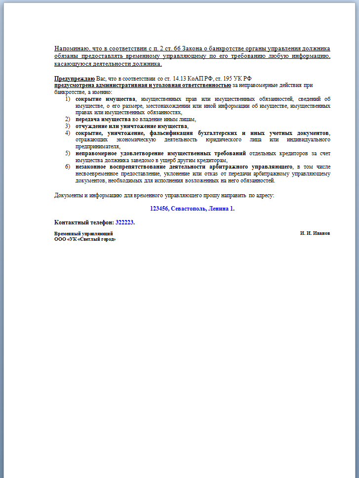 1) Отреагировать на требование "Кредитор 1" до 22.03.2015