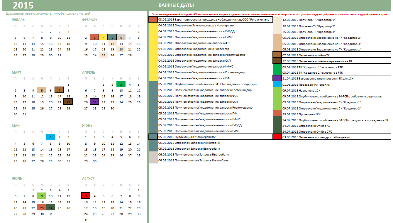 2) Отреагировать на требование "Кредитор 2" до 22.03.2015