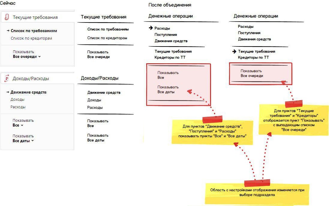 Вот как-то так наверно объединим пункты меню разделов "Текущие требования" и "Доходы/Расходы":