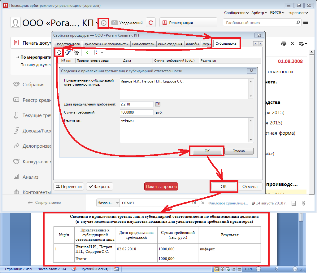 добавив последний незаполняемый нами ранее пункт "субсидиарная ответственность"