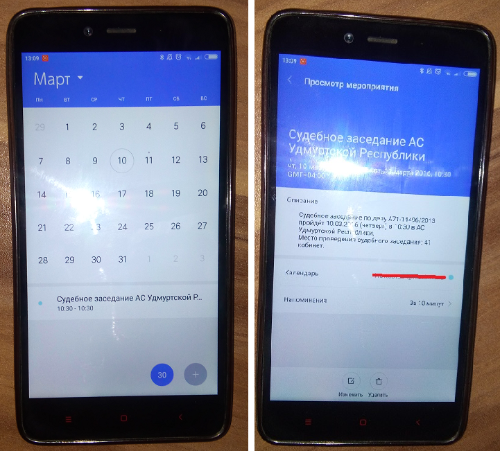 3. ну и в итоге события на конкретный день можно смотреть прямо на своём телефоне, хоть в зале заседаний хоть при назначении свидания с любовницей: