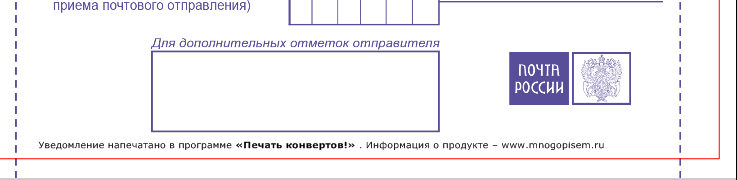 • Добавлена возможность печатать пользовательские примечания на конвертах, уведомлениях, реестрах и описях.
