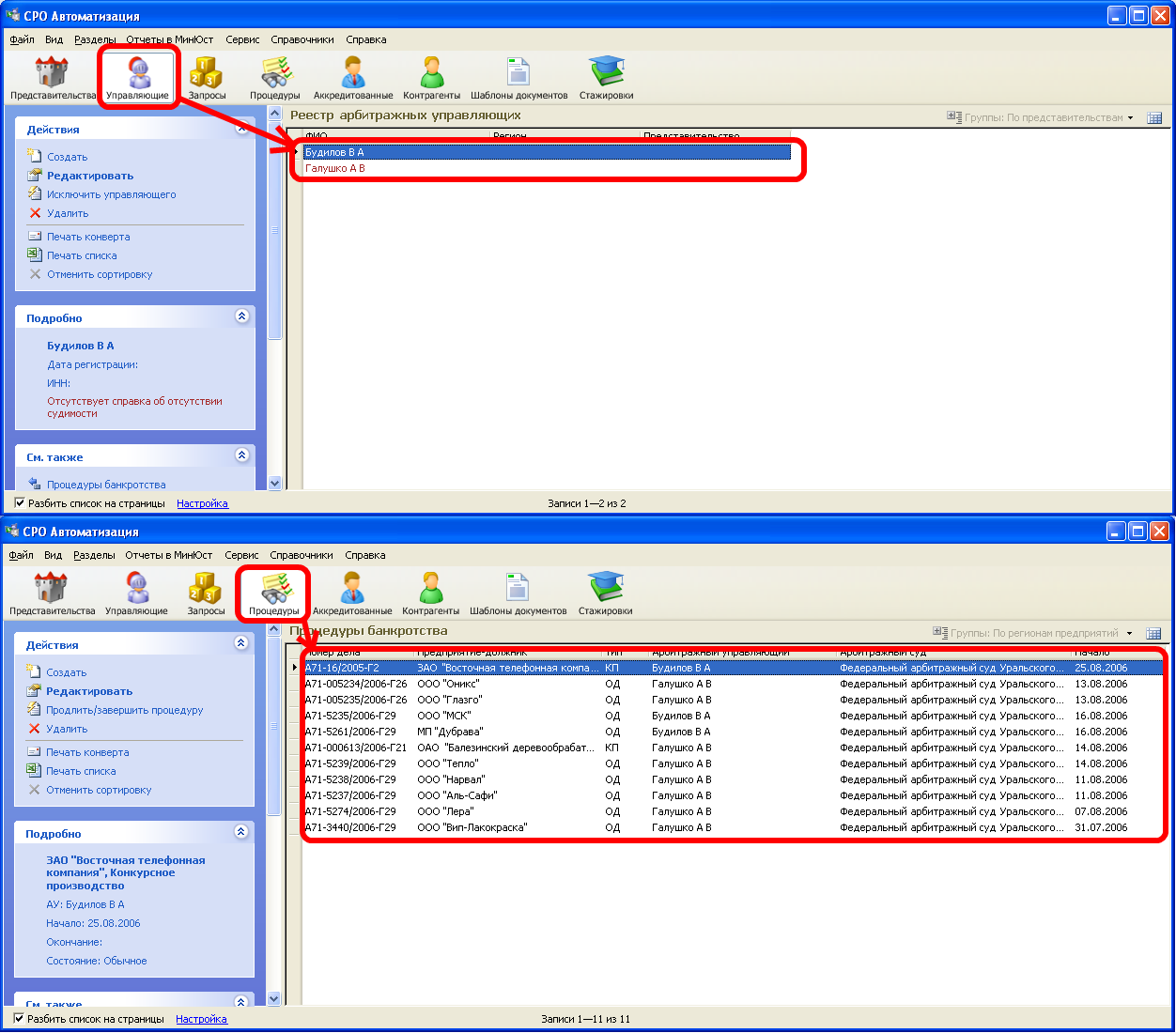 Из импортированного реестра назначений появятся данные в разделах Управляющие и Процедуры.