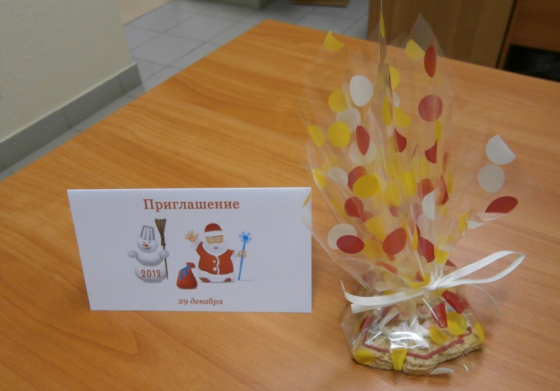 Вот такие замечательные сюрпризы ждали каждого из наших коллег сегодня утром. Не просто приглашение провести предновогодний вечер в дружной компании, но и сладкий подарок. Большое спасибо нашему HR' у.
