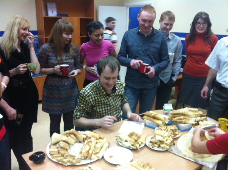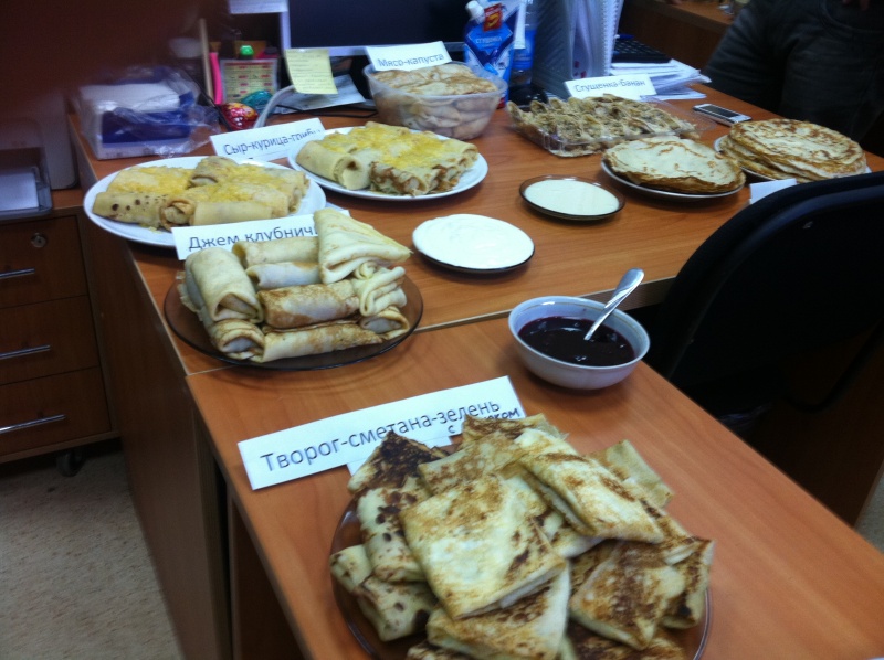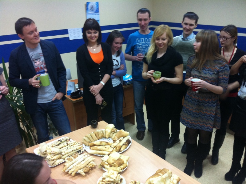 Мы встречали масленицу всем офисом. Было решено каждый день со вторника по пятницу делиться своими рецептами блинов с разными начинками и, конечно, угощать и угощаться. Неделя получилась вкусной, веселой, уж блинами нам удалось наесться надолго.