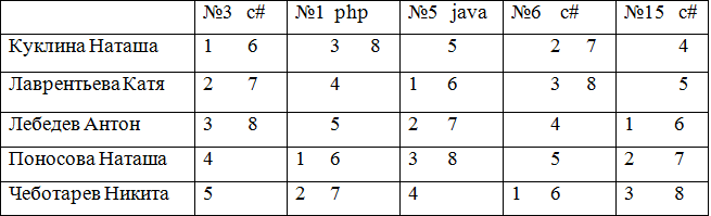 Количество проектов будет равняться количеству студентов, так что каждый студент должен сдать по одному типу практической работы в разных проектах