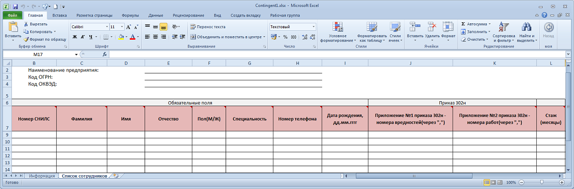 Формат файла должен соответствовать прилагаемому образцу (см приложенный у этому сообщению файл "Contingent1.xlsx").