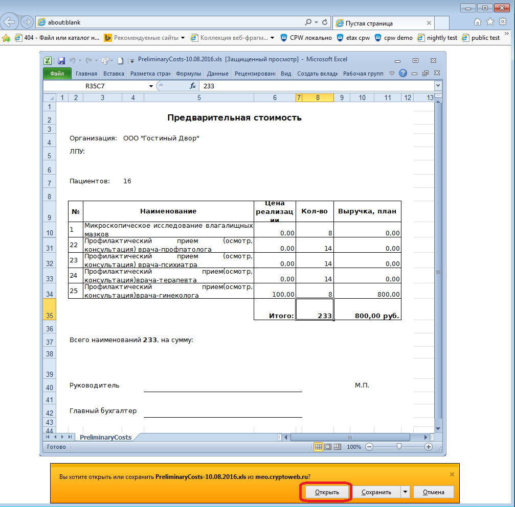 8. В открывшемся xls файле можно получить предварительный расчёт и корректировать его по своему усмотрению