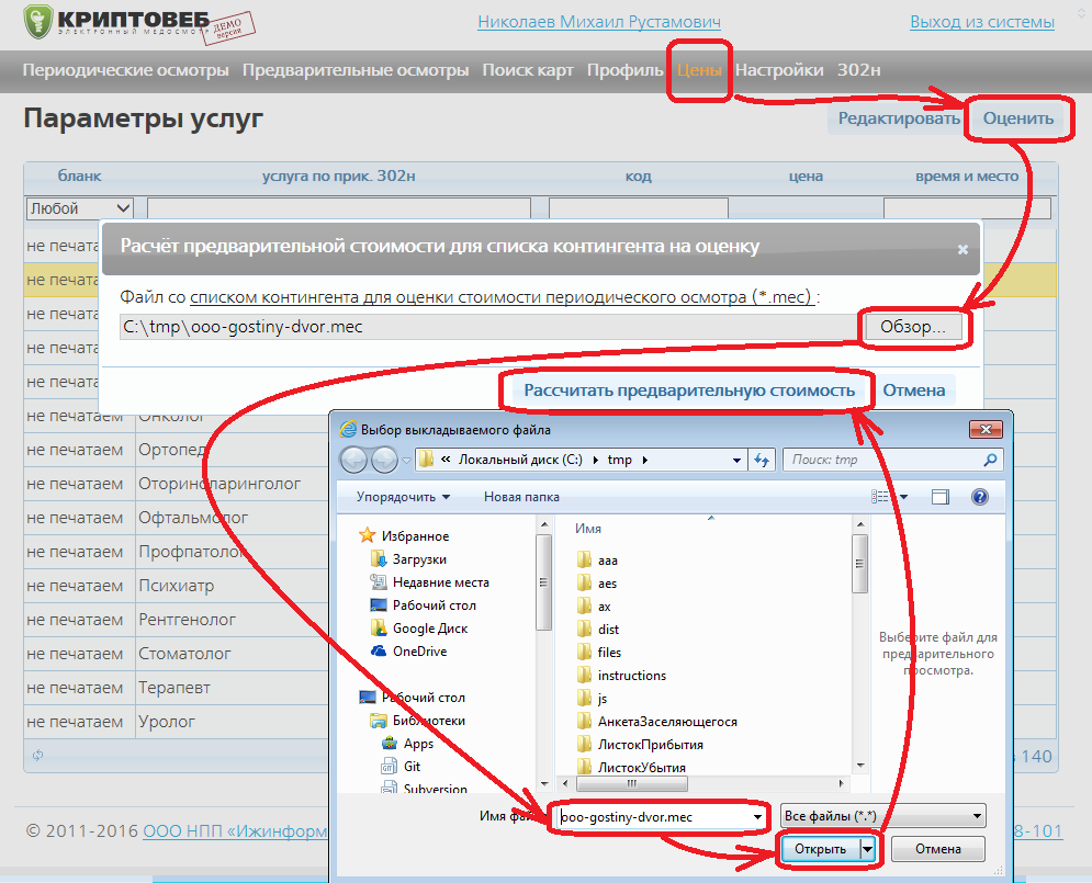 Пришёл почтой файл в формате *.mec с запросом на оценку. Как можно посчитать стоимость медосмотра по приказу 302Н минздравсоцразвития?
