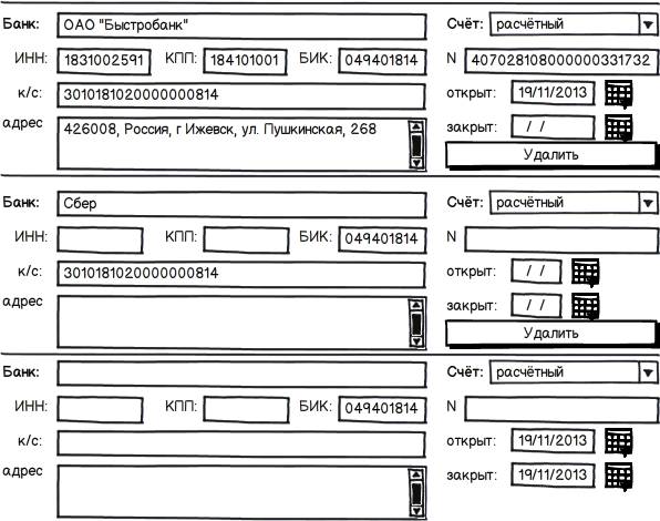 форма массового ввода банковских счетов что мы делали ранее уже устарела