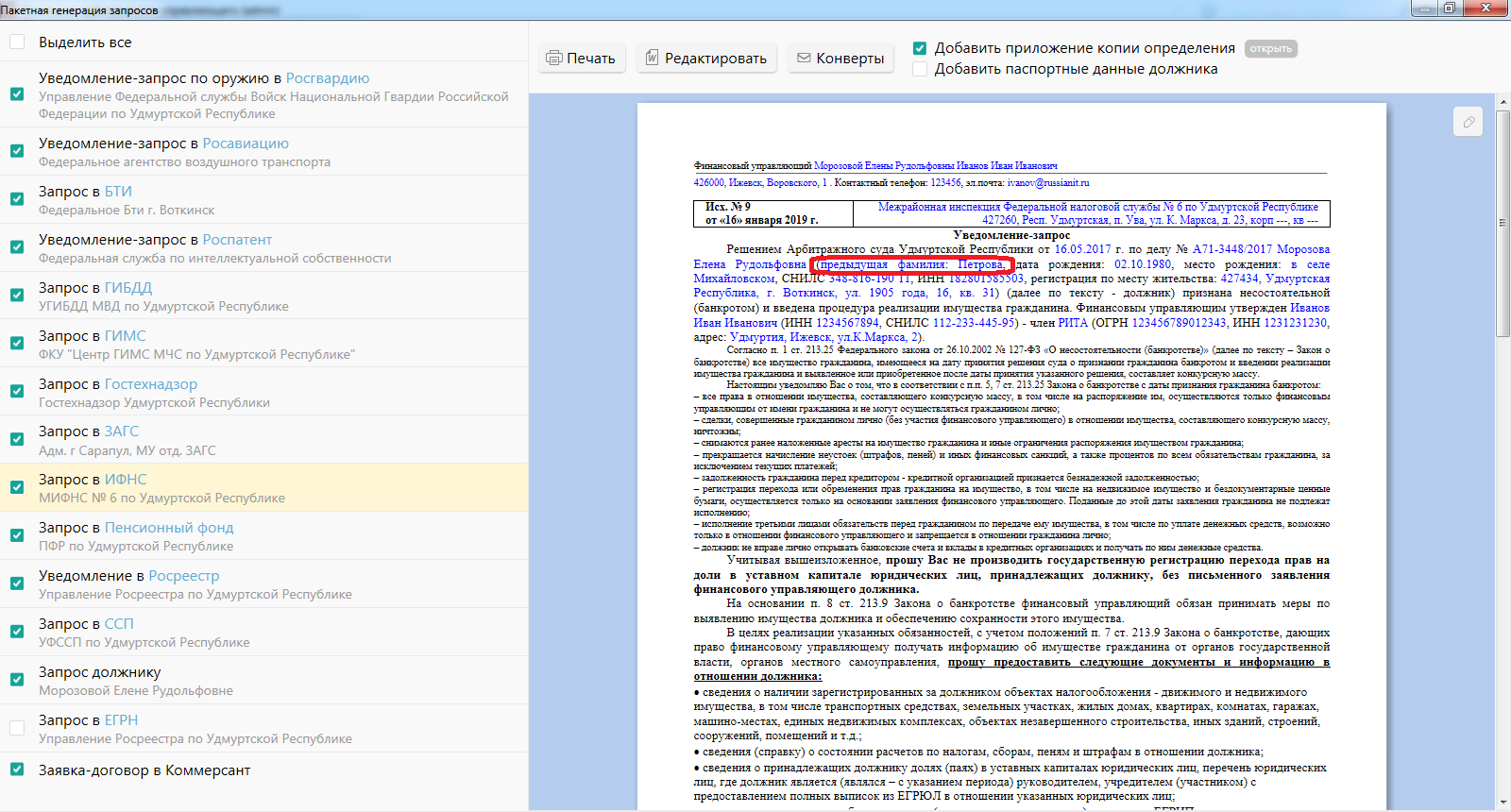 А просят они нас в частности наладить более плотную и прозрачную связь между доходами и расходами и цифрой в конкурсной массе.