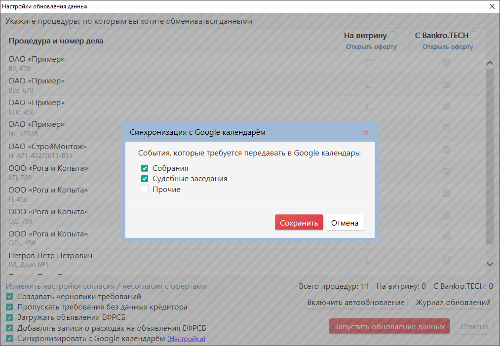 Ну и по итогу мы можем формировать исковое заявление о привлечении, регистрировать результаты, генерировать необходимые сообщения на ЕФРСБ, фиксировать волю кредиторов о способах распоряжения etc