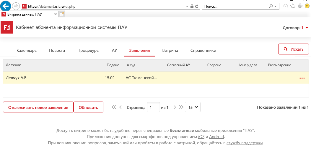 1. ваши заявления появятся в списке при регистрации процедуры в ПАУ