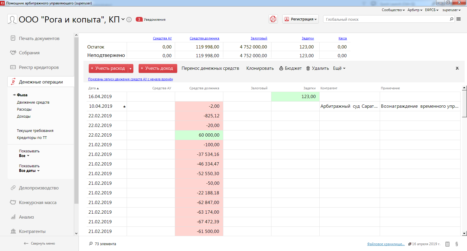 Очевидно что начисления з/п сильно отличается на разных предприятиях и коль скоро люди какое то время продолжают работать, очевидно что з/п им проще начислять там где она начислялась ранее - в 1С etc. Однако некоторые виды документов и записей, куда должны попадать цифры, специфичны именно для банкротства - отчёты о текущих требованиях, доходах расходах, реестре. Так что необходимо осуществлять регулярный "импорт" данных из других систем. Хотя конечно, должно быть доступно и введение всех данных и вручную.