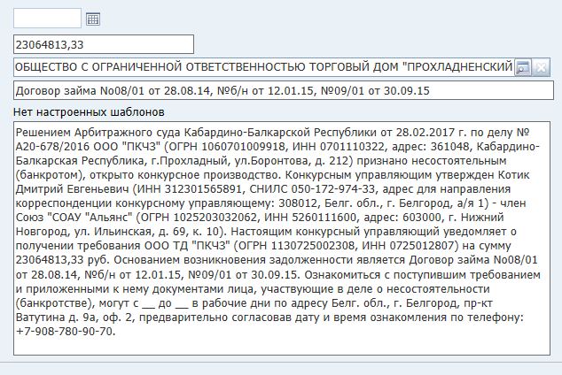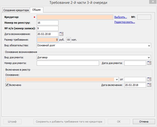 2. «Номер по реестру» и «№ п/п» - не заполнены. Заполняются автоматически позже, после включения судом требования в реестр и заполнения соответствующих данных. Сейчас из-за этих номеров при непоследовательном включении кредиторов создается большая путаница.